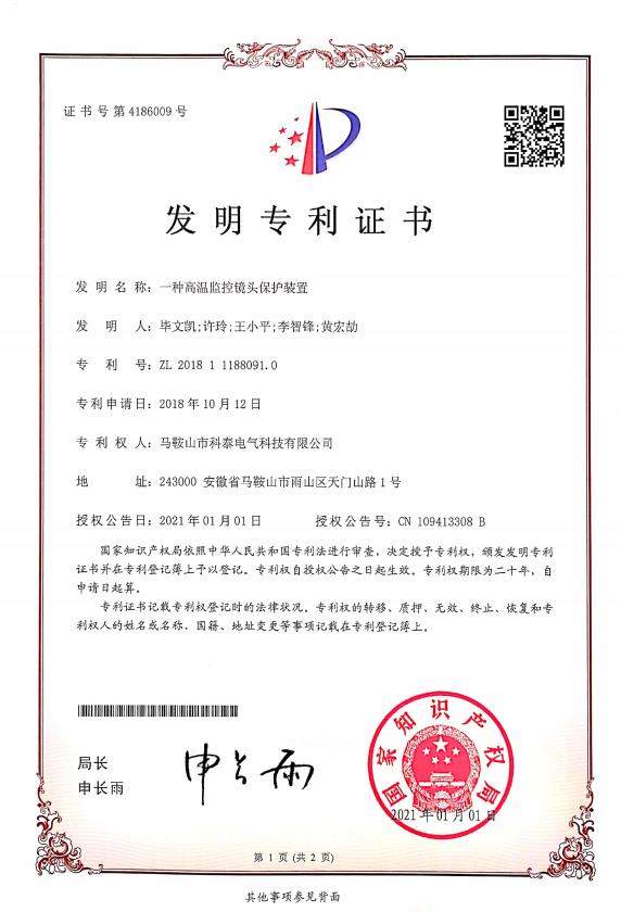 上一个:具有自预警功能的锅炉火焰高温智能工业电视系统发明证书